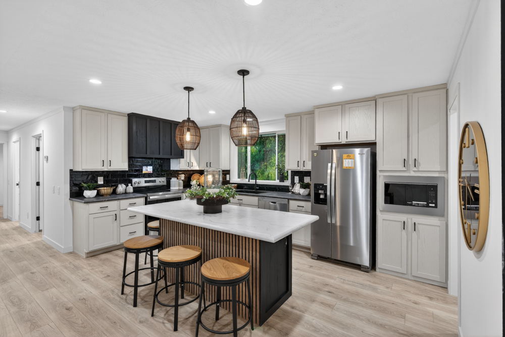 The Aura model has 4 Beds and 3 Baths. This 1728 square foot Double Wide home is available for delivery in